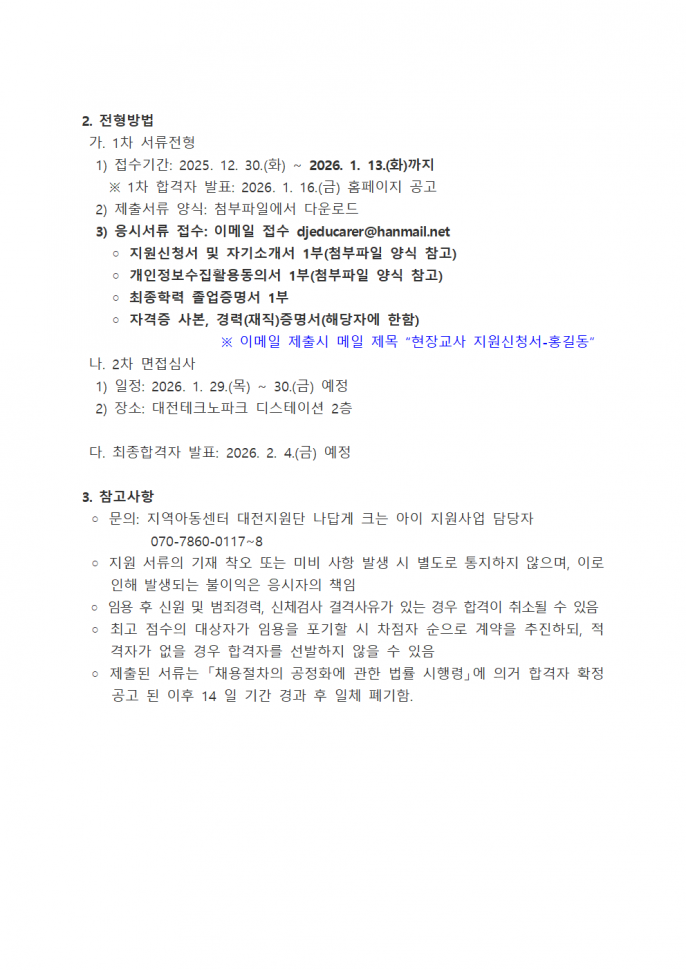 2026나답게크는아이 현장교사 최종합격자…