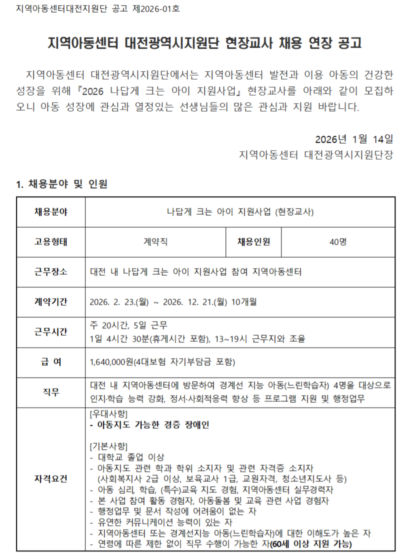 [공지] 2026 나답게크는아이 현장교사 채용 공고(연장)